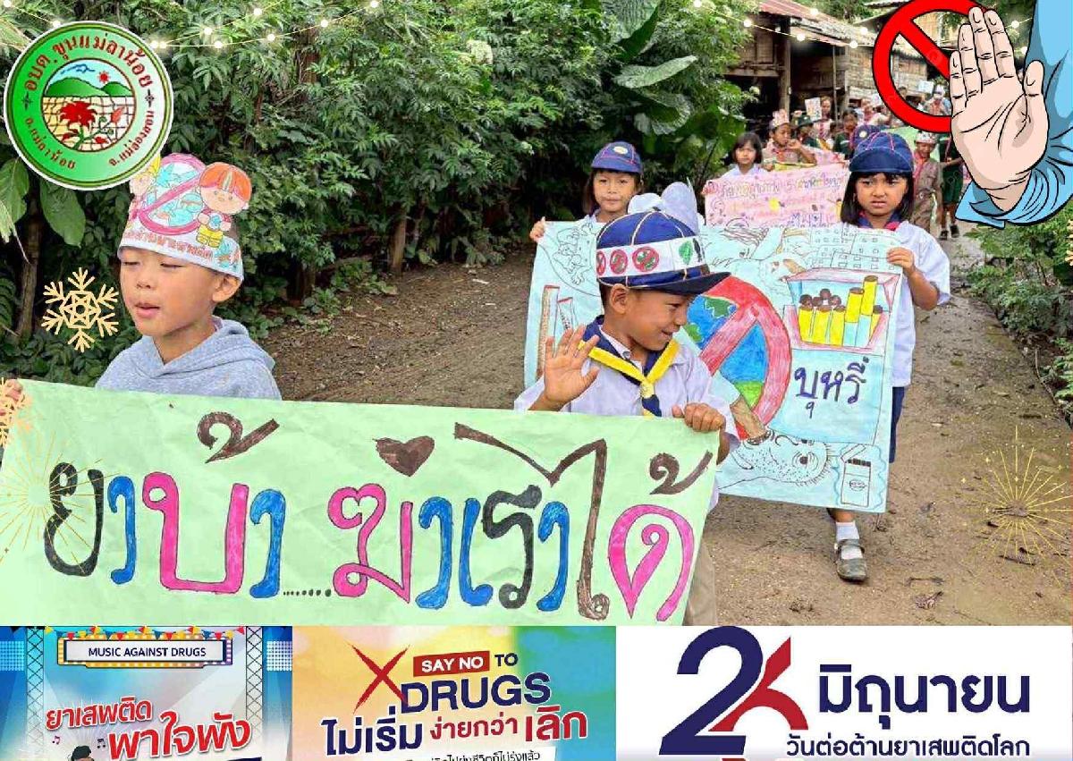 วันนี้26 มิถุนายน 2568 องค์การบริหารส่วนตำบลขุนแม่ลาน้อย ร่วมกับโรงเรียนบ้านขุนแม่ลา ร่วมเดินรณรงค์ เนื่องในวันต่อต้านยาเสพติดโลก ประจำปี 2568 ภายใต้กรอบแนวคิด "Stop Drugs, Start Power สร้างพลังไทย หยุดภัยยาเสพติด" ณ บ้านขุนแม่ลาน้อย หมู่1 ตำบลขุนแม่ลาน้อย อำเภอแม่ลาน้อย จังหวัดแม่ฮ่องสอน ????มีวัตถุประสงค์เพื่อให้กลุ่มเป้าหมายรับรู้และตระหนักถึงความสำคัญของวันต่อต้านยาเสพติดโลก รวมถึงมีภูมิคุ้มกันและมีความเข้าใจเกี่ยวกับโทษและภัยของยาเสพติด จนสามารถป้องกันตนเอง ครอบครัว หมู่บ้าน/ชุมชน