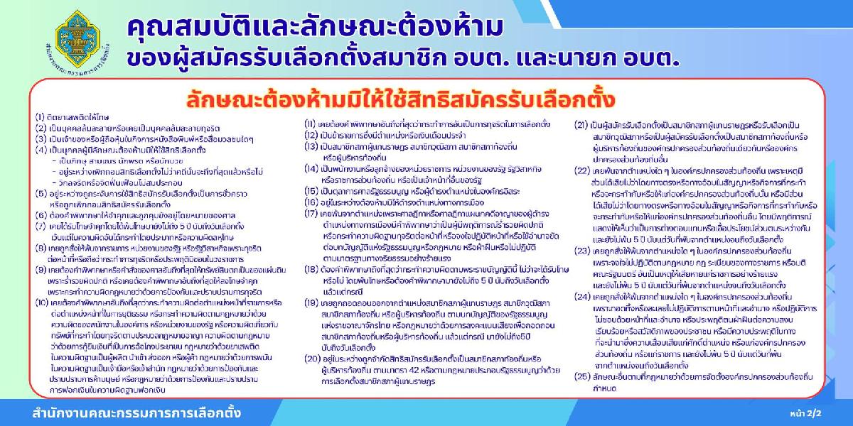 คุณสมบัติและลักษณะต้องห้ามของผู้สมัครรับเลือกตั้งสมาชิก อบต. และนายก อบต. ลักษณะต้องห้ามมิให้ใช้สิทธิสมัครรับเลือกตั้ง
