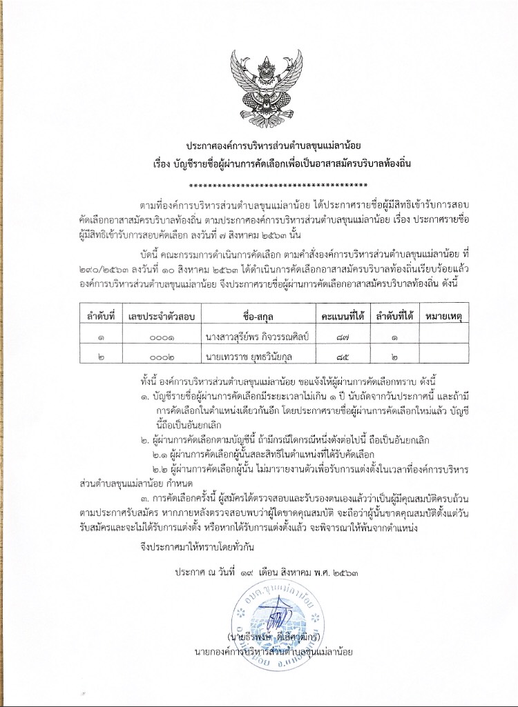 ประกาศโดย : อบต.ขุนแม่ลาน้อย เมื่อ 19 สิงหาคม 2563